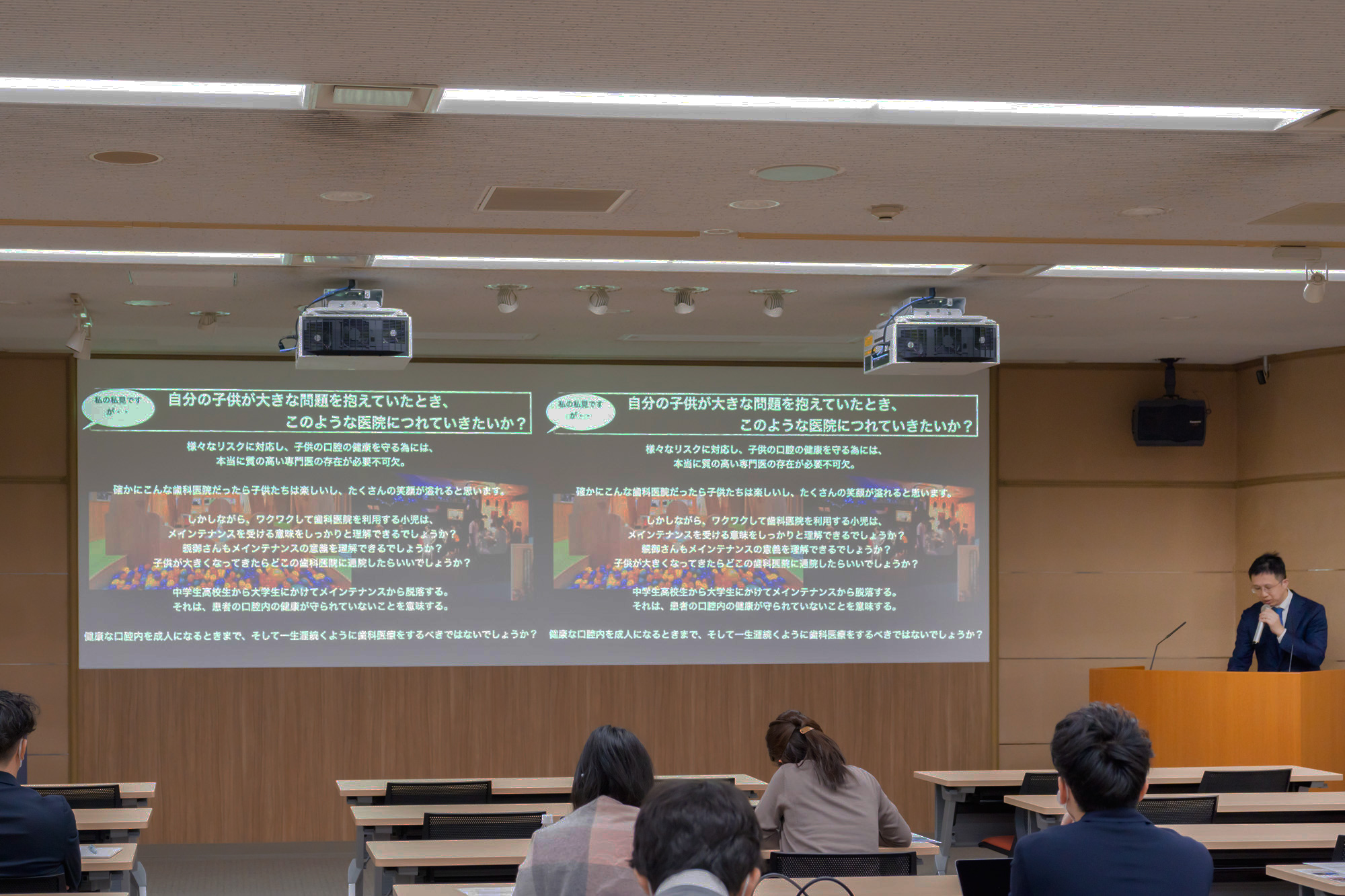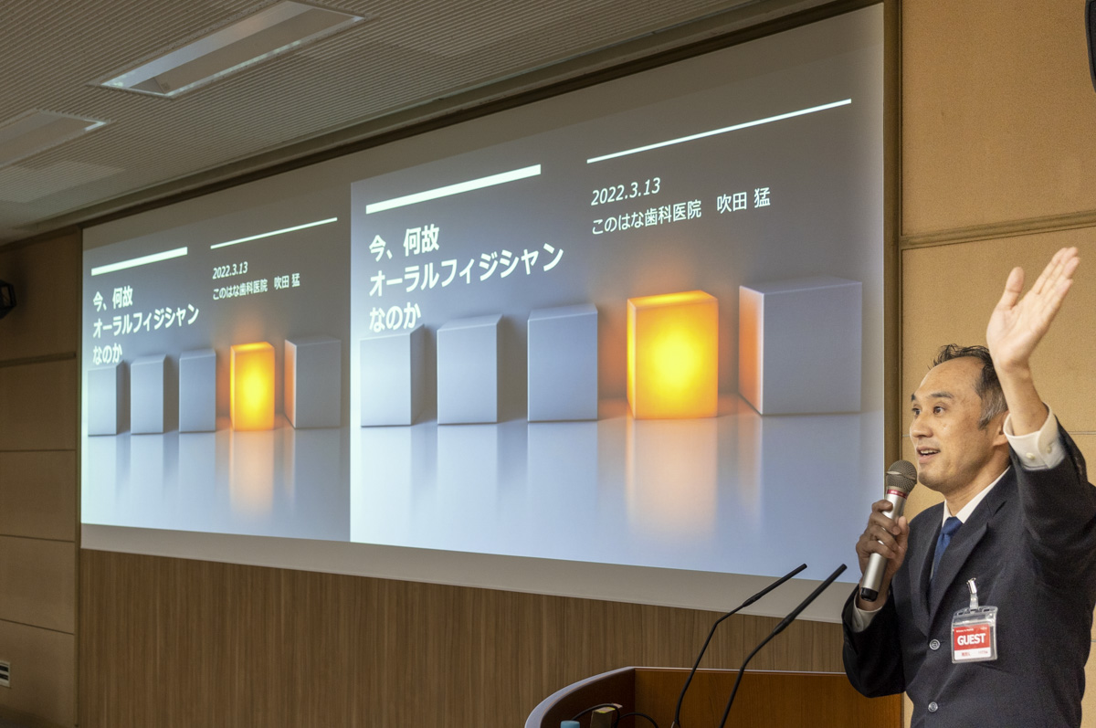 セミナーは、「歯科医療の本質とは何か?」と題した日本の歯科医療の問題点と目指すべき歯科医療についての私の講演から始まり、赤松佑紀講師による「メディカルトリートメントモデルについて」、午後からは、大久保恵子講師による「女性歯科医師だからこそ、オーラルフィジシャンをめざそう」、吹田猛講師による「今、何故オーラルフィジシャンなのか」と題したオーラルフィジシャンへの道のり、最後は、今林大輔講師による「予防歯科のミライ」で締めくくった。常日頃の歯科医療に対して、一貫して「本当にそれでいいのか?」と問いかける講演内容に、参加者の真剣な表情が印象的であった。講演後は、「メディカルトリートメントモデルを、どのように患者に説明したらいいのか。」、「スタッフ教育は、どうしたらいいのか。」といった、具体的な質問が多く寄せられ、盛況のうちに閉会となった。