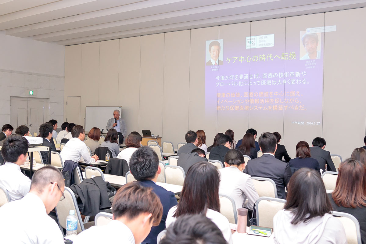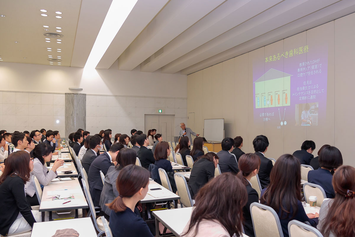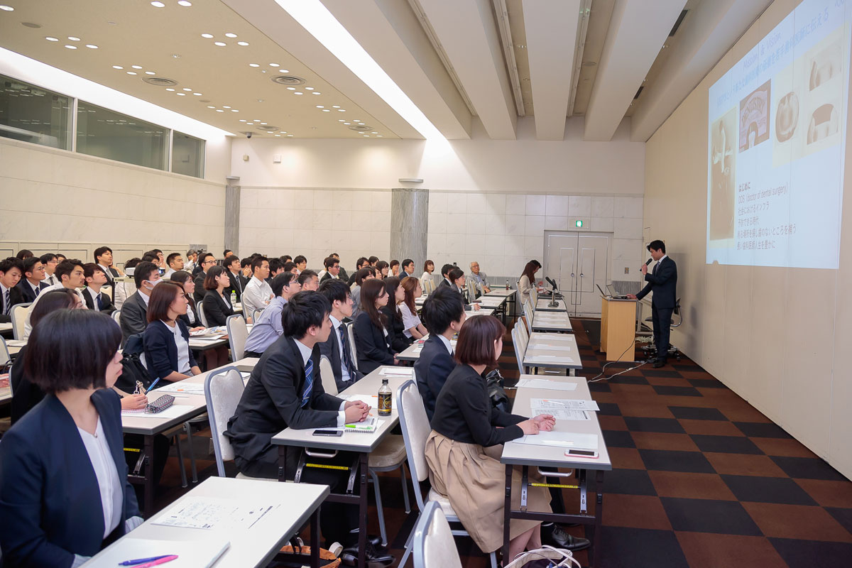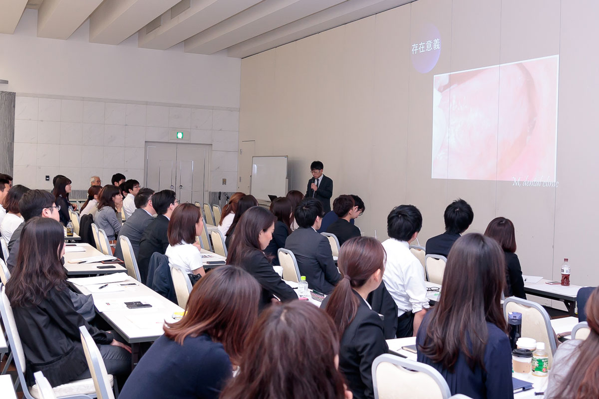 春休み、地元へ帰った時気が付いたことなのですが、私の同級生は(歯学部生ではない)就活をしている中で、面接時の印象や大企業の重役の方の口元を見たりすると、やはり歯・口腔の美しさ(健康さ)への意識が高く、口腔内の健康に意識するようになったという話を聞きました。そこで、今まで必要なメンテナンスをしてこなかったことに後悔する人が多いことに歯科を知らない人々の意識の高さにおどろきました。企業向けのセミナーはもちろん大切だと思いますが、就活を通して口腔の健康に目を向けた歯科以外の大学生に対してもこの様な話をぜひ聞いてほしいと私は思いました。(地元は岐阜ですが、友人はみな名古屋に就活・就職するので、見た目(笑顔)がとても大切だと言っておりました。)